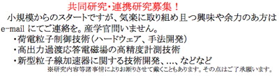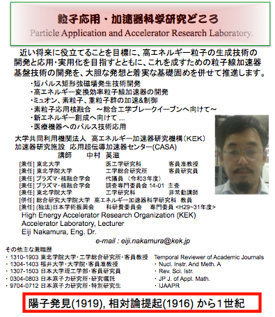 (Anno:130329) I will join to new scientific study on energy production using high-energy particle accelerators as a visitng Associate Professor of Fukui University since April 1st, 2013.
