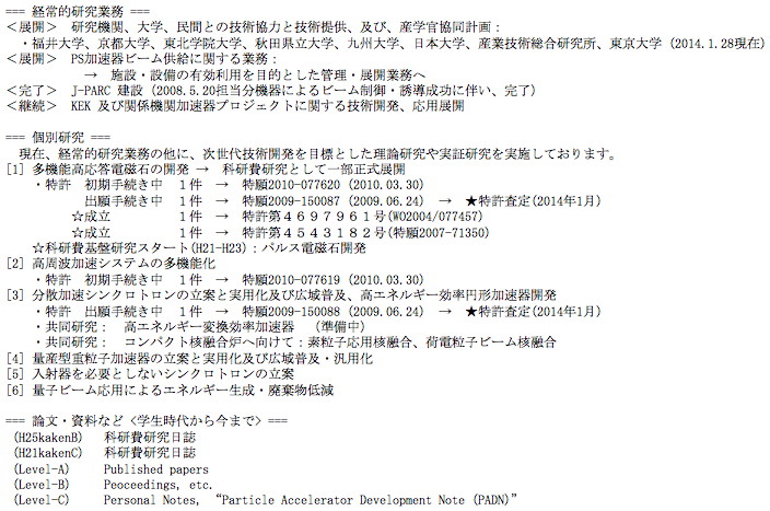(Anno:150401) Three personal academic research projects were decided to be continued: KAKENHI 25286089, 2661074 and the investigative technical committee in JSPF #14-01.