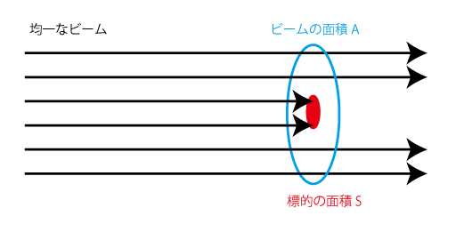 ビームが、ターゲットのある面積Aに均一に当たっているものとする。