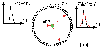 それでは、この中性子非弾性散乱はどのように測定するのか。一言で言えば試料となる物質に中性子ビームを当て、その時のエネルギーのやり取りにより中性子速度の変化(速度が変化すれば当然波長も変化する)を測定するのですが、その方法には大きく分けて3つあります。