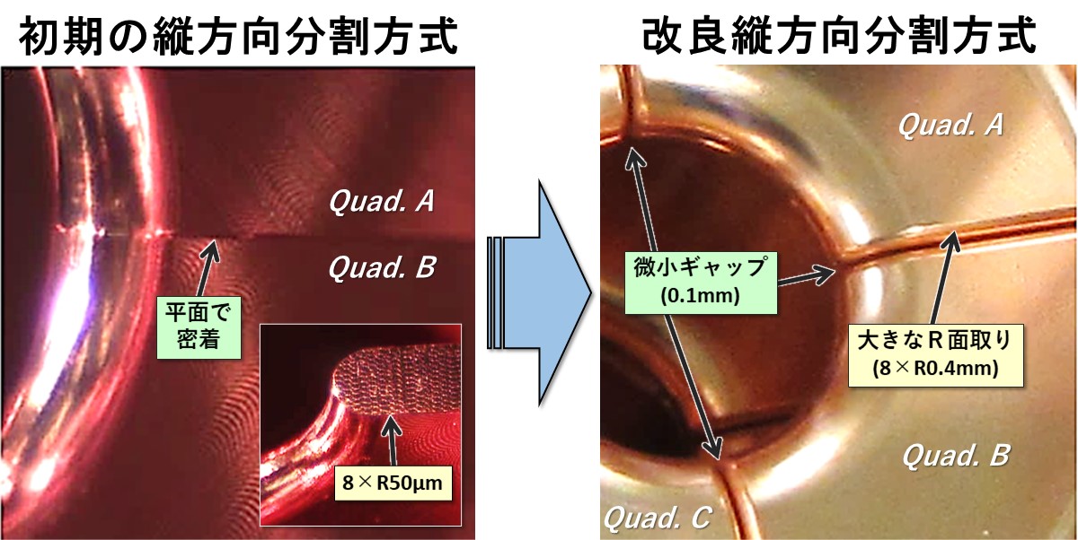 一方、本加速構造は、加速空洞とそれらを繋ぐ溝付きビームパイプが強固に連結し、 全体としてひとつの機械的構造体を成す。
